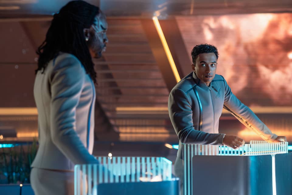 Karim Diane as Jay-Den and Sandro Rosta as Caleb in Star Trek: Starfleet Academy, episode 4, season 1, streaming on Paramount+, 3035. Photo Credit: Brooke Palmer Paramount+